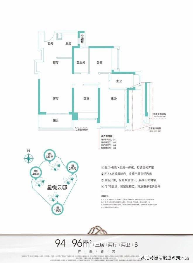 主力户型建面约95-124㎡臻品三至四房,启悦城市美好未来