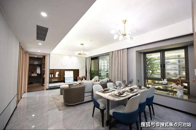 项目舒居四房整体采用了年轻、时尚、简约的“都市轻奢”装修风格,全南向布局,南北通透,户内各房间均有阳台或凸窗设计,满足360°全景视野。约6.7米奢阔阳台直通主卧,空间更加通透明亮。