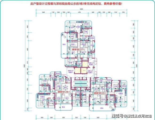 6单元,24层,层高约3.15米,3梯3户,约188平,可售69套;