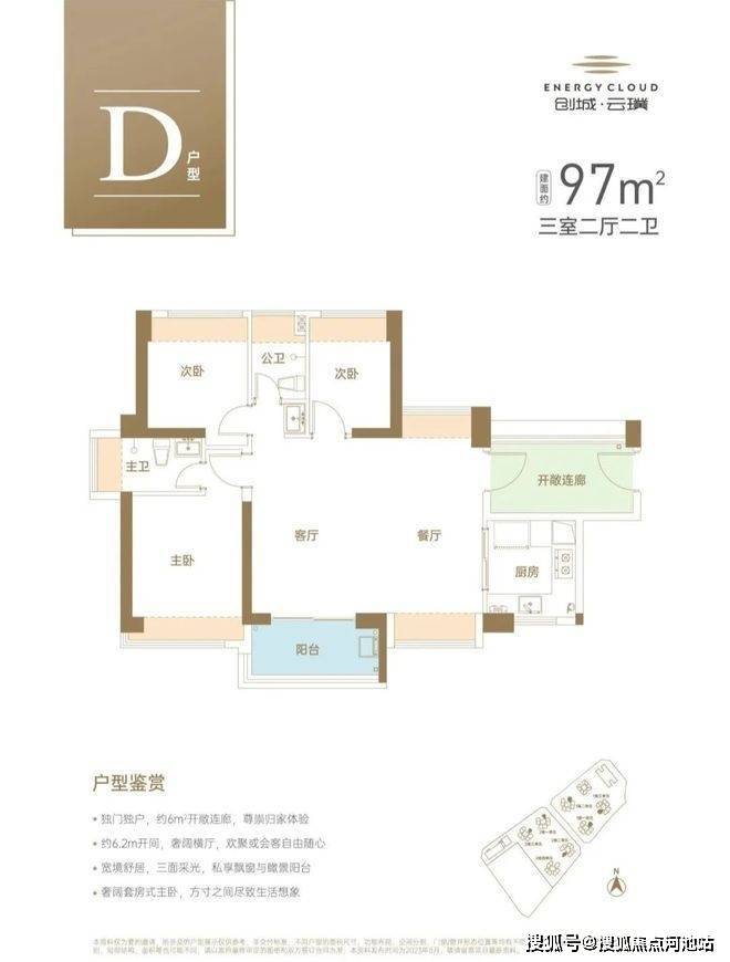 建面约97㎡独门独户3房2厅2卫,三面采光设计,室内阳光超长待机,约6.2m大开间横厅,出入步履无拘。