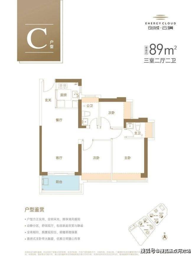 建面约89㎡阳光3房2厅2卫,全明户型设计,户户均朝阳采光,卧室带飘窗,生活多出N种精彩