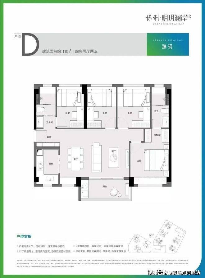 D户型建面约113㎡四房两厅两卫