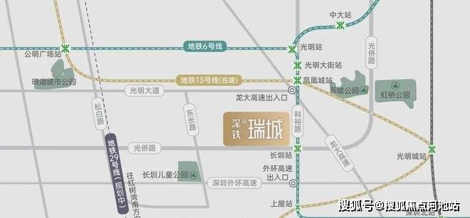 临近光明城综合交通枢纽,连接广深港高铁与赣深高铁,未来将引入13号线(在建)、地铁6号线支线二期(在建)及深莞增城际(规划)。