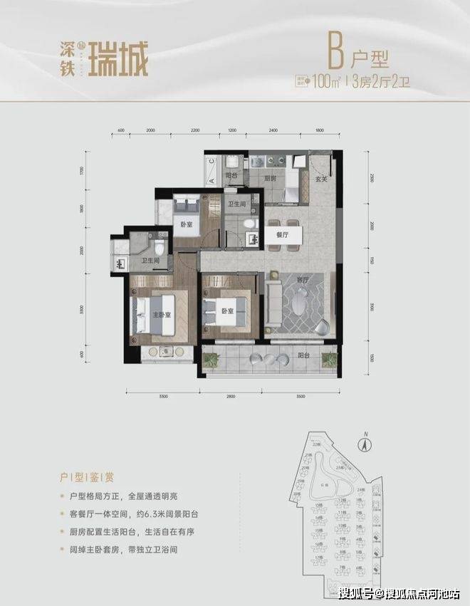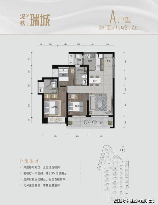 【深铁瑞城二期】单价仅3.4万起/㎡,建面约96-100平三房,楼下6号线地铁口
