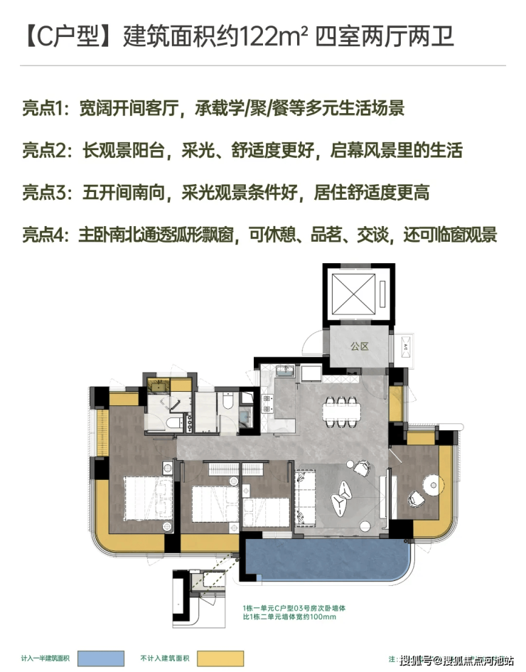 270°弧形无柱大尺度飘窗、大宽厅、大阳台,带来更多使用空间。