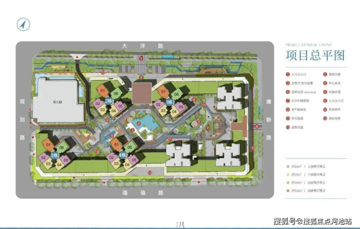 住宅户型:建面约84-128㎡三至四房,住宅使用率约78%
