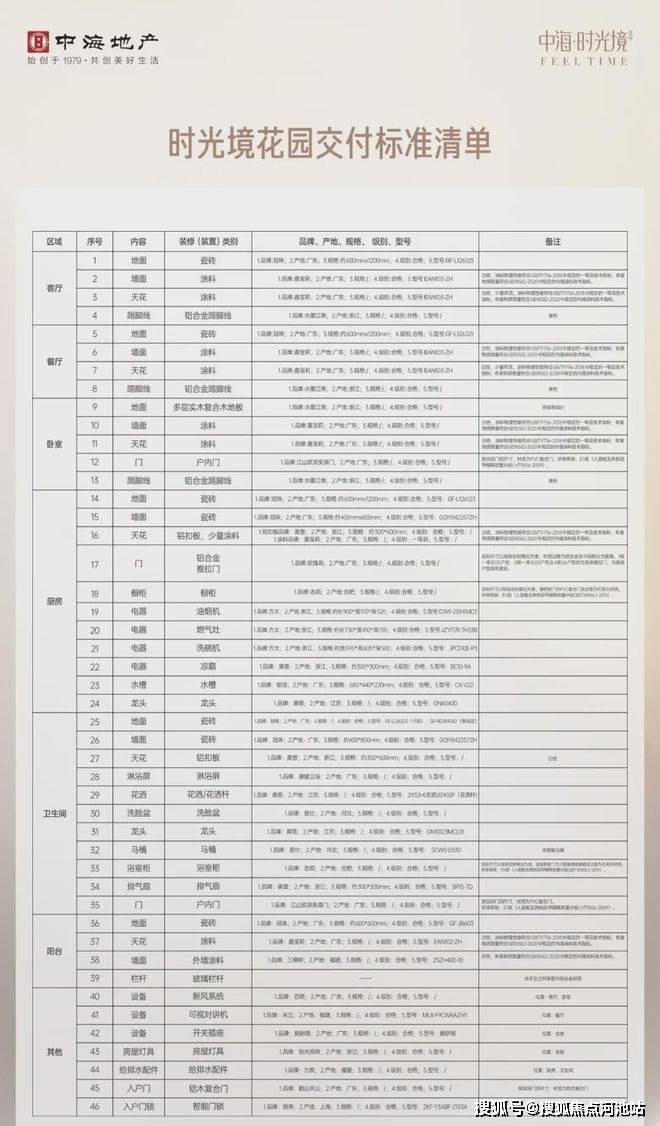 中海时光境交房装修标准: