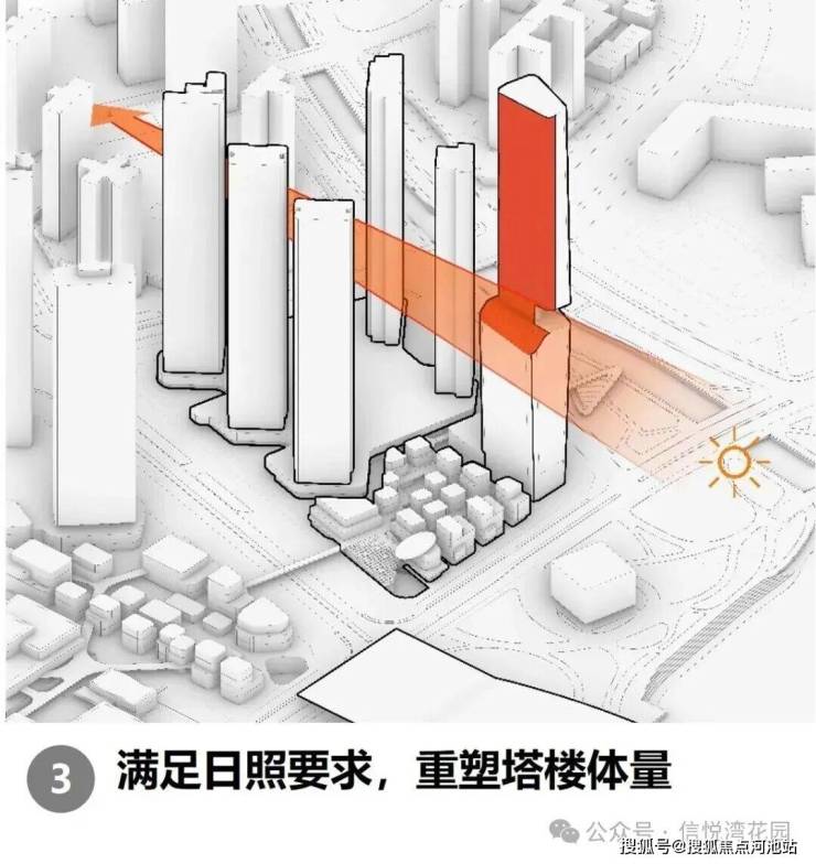 提议将高层塔楼后退,释放前排滨海地面空间,打造小尺度商业与文化街区,形成与歌剧院南北呼应的“泛演绎”式公共空间,东西贯通至蛇口山公园形成滨海活力景观商业带。