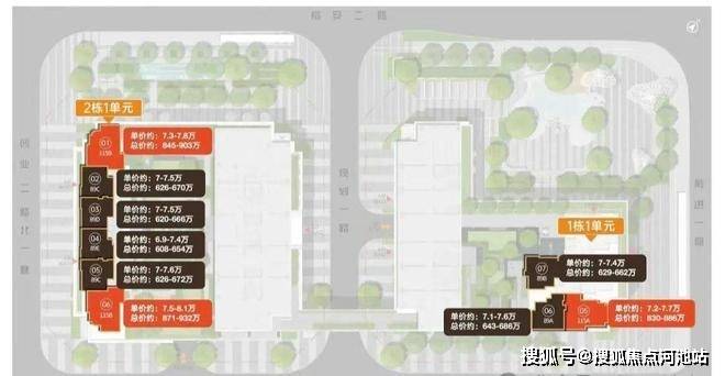 2栋1单元板楼:89平三房两卫,总价608万~672万;115平四房两卫,总价845万~932万;