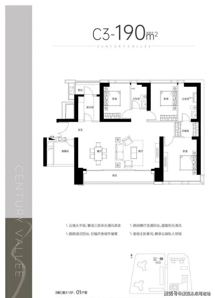 约131-262㎡2-5房,天幕公馆,70年产权,户户带阳台。由“全球百大设计巨头”矩阵纵横设计,约3.3m奢阔层高,环幕景观阳台。
