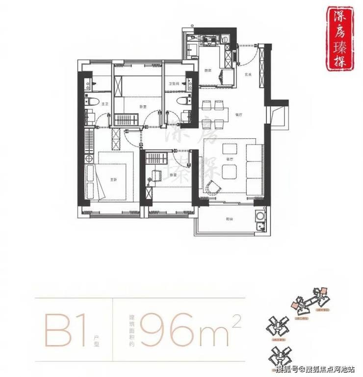 96㎡的3房2厅2卫,折后总价450万起,单价4.68万/㎡起。