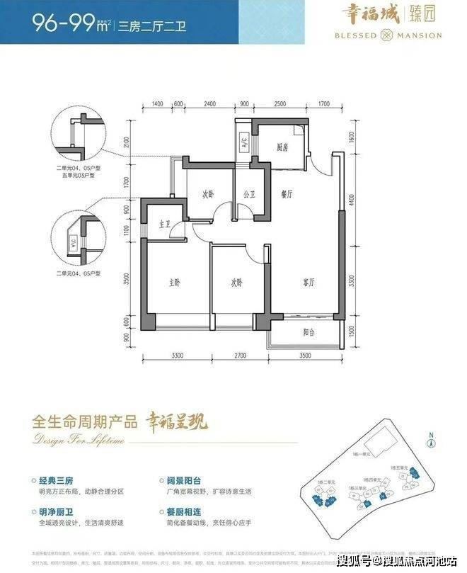 96-99㎡的3房2厅2卫