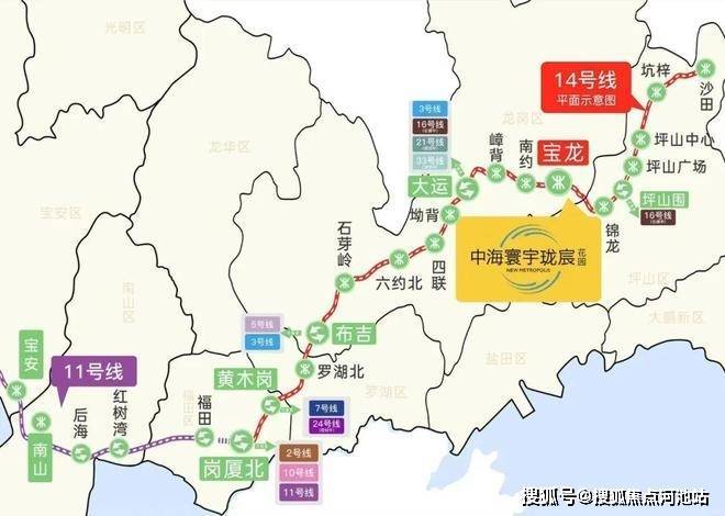 交通配套:14号地铁线“宝龙站”距离约1.4公里,项目配建有公交首末站,可坐公交车直达地铁站,该线路是从坪山沙田开往福田岗夏北的快速线,设计时速120公里,3站到大运,8站到布吉,9站到罗湖,11站到福田岗厦北,用时41分钟。