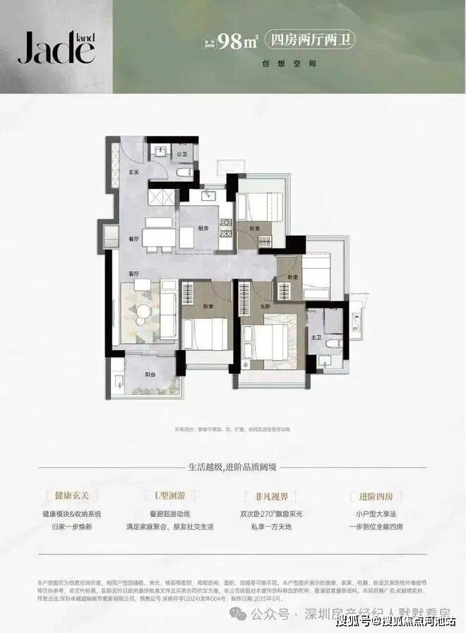 92平南向4房2卫,灵动空间,超阔视野折后底价:426-520万