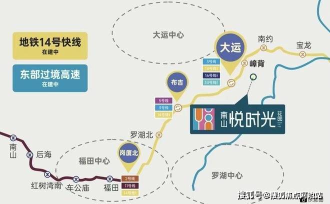 14号快线:东部首条快线,时速达120公里,预计2022年9月底通车。南山悦时光毗邻嶂背站,1站大运,8站福田,30分钟直抵福田中心。