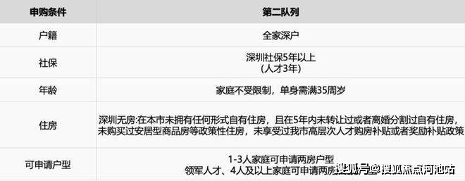 第二队列:深圳无房,全家深户,申请人5年社保(人才3年),家庭无年龄限制,单身需满35岁以上