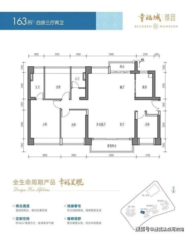 02.建面约114-117㎡四房两厅两卫(横厅),全明四开间朝南,客厅开间4.4米,6.3米南向舒阔双厅,东南或西南朝向。