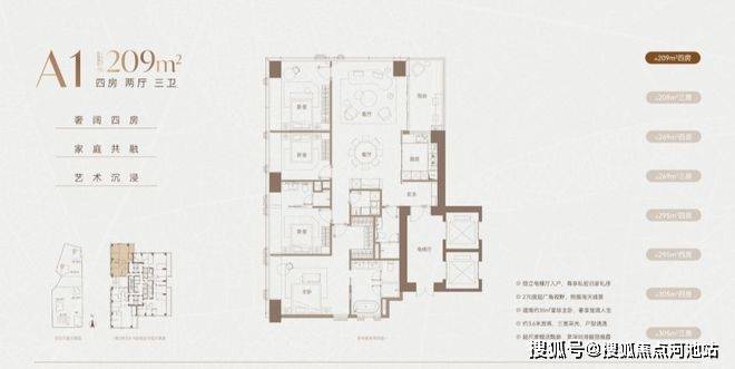 以下是深圳湾澐玺最新公布的209-305㎡的两种方案户型设计图