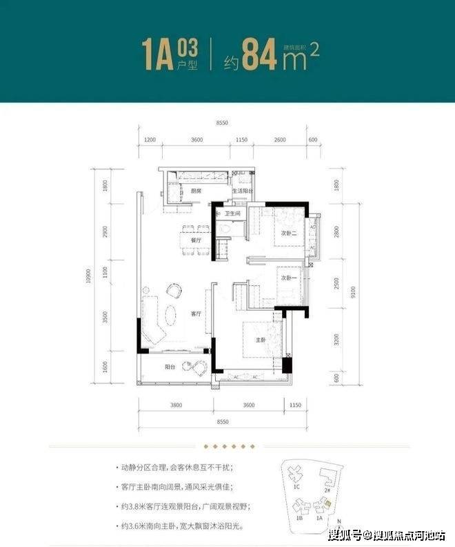 建面约82-89㎡ 舒居准现房,户型格局方正,约3.6-3.8米开阔客厅,使用率极高。