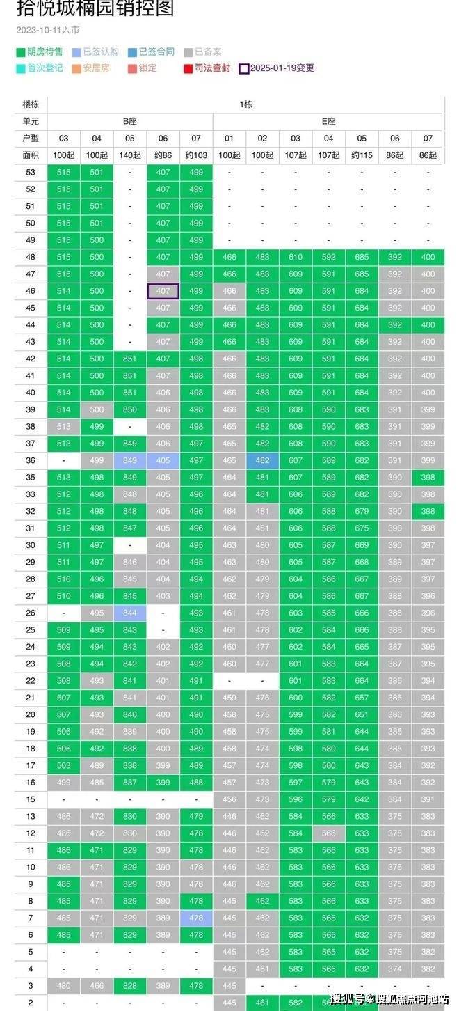 这是拾悦城所有的销控表