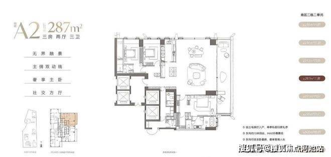 低区户型面积:216-287-295-305平;