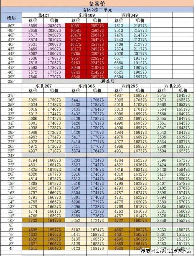 北区348套,分低区、高区。备案单价14-35万/㎡,备案总价3000万-3.7个亿,均价16.88万,带精装交付。