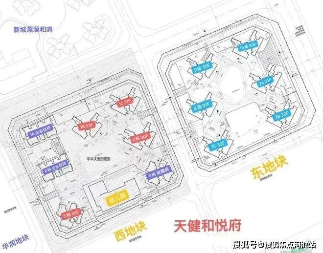 天健和悦府由天健集团打造,是在坪山的第一个项目,总占地面积约7.62万㎡,总建筑面积约32.8万㎡,计容建筑面积23.93万㎡,容积率4.77,绿化率40%,分东西2个地块开发,共由13栋21-45层高的住宅组成,总规划2833户,其中可售商品房1740套,规划停车位2599个,车位占比约1:0.91。