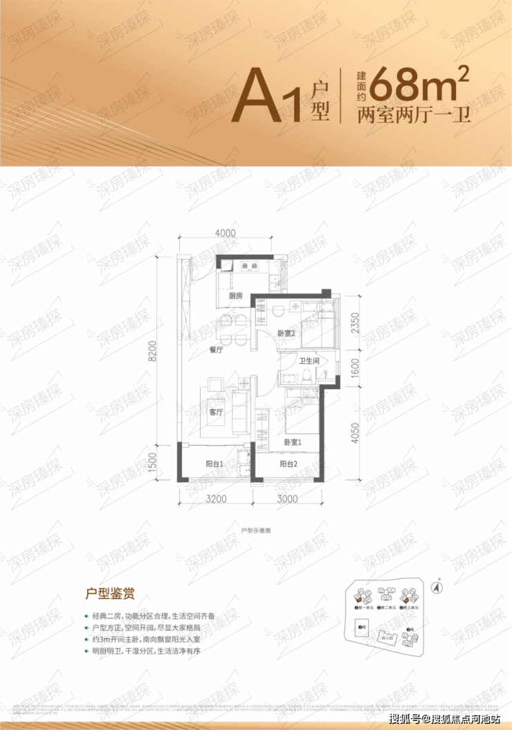 68㎡的2房2厅1卫,折后总价287-315万/套,折后单价4.25-4.64万/㎡。