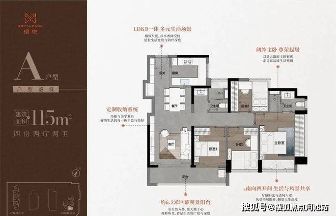 ◾115㎡奢阔4房有俩个户型仅可售85套,A户型东南向仅29套 ,B户型仅56套, 都是通透的四房,使用率92%