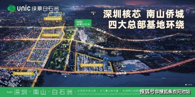 绿景白石洲项目坐落在深南大道以北、沙河东路以东、香山西街以南、华夏街以西的围合位置。在深圳南山的核心区位,毗邻华侨城传统豪宅片区,并且在2035年规划落地打造一座3.44平方公里的中央公园就在项目旁,即由沙河高尔夫及名商高尔夫体育公园构成的城市中央公园绿化带。这里也将如纽约中央公园那样环公园形成一条不断突破天际线的豪宅带,是最宜居、资源最密集的生活地。另外,项目依托大沙河创新走廊串联起四大总部基地,北有留仙洞——如全球头部企业大疆天空之城;西有高新园——如腾讯 、迈瑞、华为等,以及后海金融中心——华润总部、中海油等汇聚于此;南连深圳湾超总——如天音 万科总部都汇聚于此,项目近距离享受四大总部基地带来的发展利好,是最好、最集中的产业聚集地。