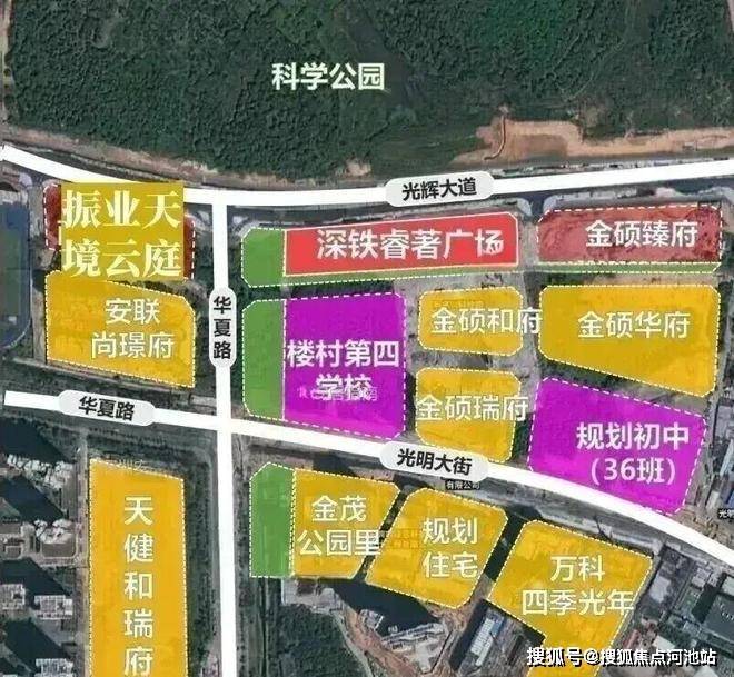 ——南侧:学校地块(深圳外国语光明学校集团下的楼村第四学校[暂定名])和住宅金硕和府