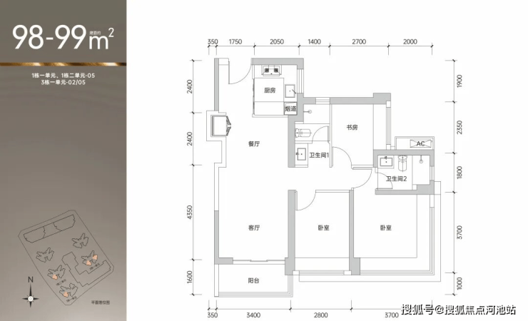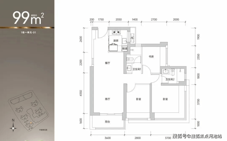 99㎡三房两厅两卫 (舒居三口之家首选)