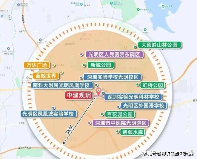 中建观玥名邸,位于光明区凤凰街道光侨路与观光路交汇处东南侧,地处凤凰城板块,根据光明十四五规划,凤凰城板块定位为光明科技总部基地,科创融合先锋商务区,提升光明城站枢纽地位,争取在2035年建成竞争力影响力卓越的世界一流科学城和高 质量高颜值的深圳北部中心。