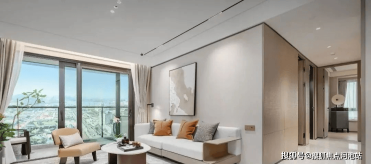 以户型基本整体得房率约80% ,这是在不算飘窗和阳台一半面积的前提下,所有户型客厅出阳台,要么朝南、要么朝东南、要么朝西南,朝向好,从采光面及朝向方面完全没话说!