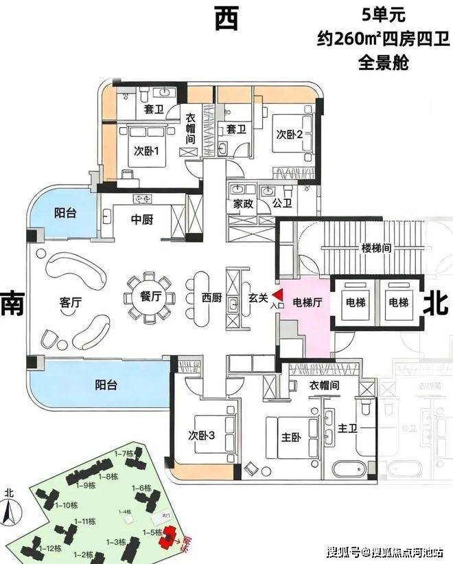 观潮府首推的是1-5栋、1-6栋、1-7栋约180套143-168-188-260-488㎡户型,全部都带有专梯入户空间。