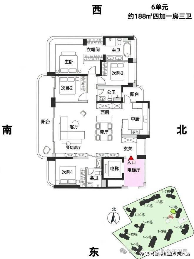 188㎡4房3卫,3梯3户,总价约2500万(单价约13.2万/㎡)
