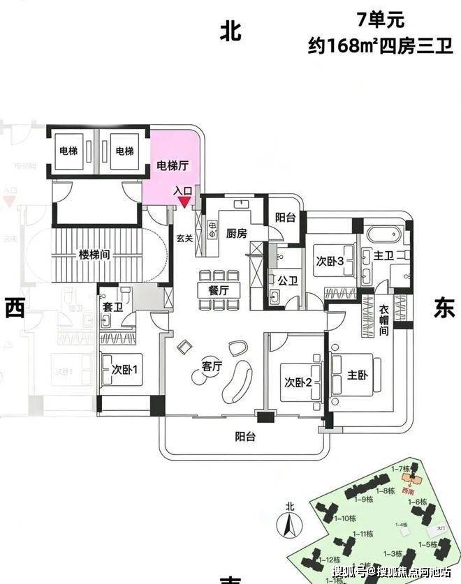 168㎡4房2卫,3梯3户,总价约2200万(单价约13万/㎡)