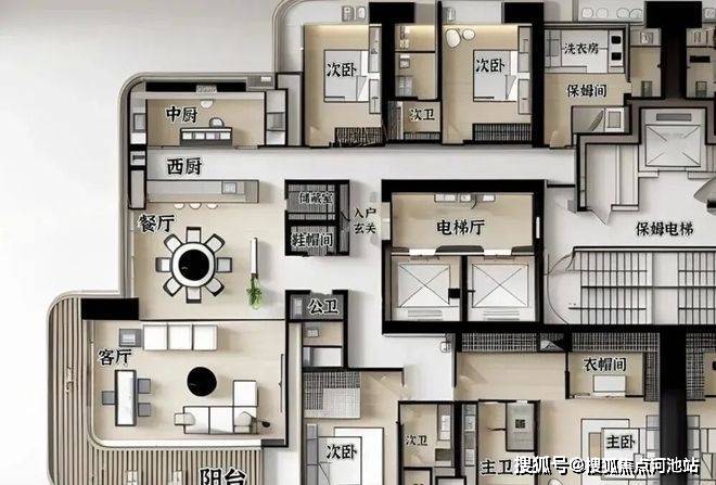 中信元湾府的户型设计明显跳脱旧思维,从横厅尺度、公区布局到生活动线,都向国际一线大平层靠拢。