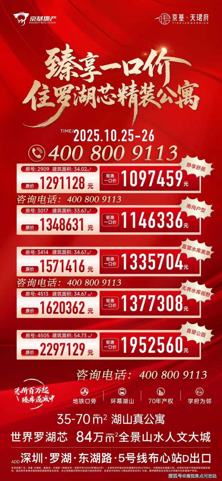 罗湖《京基天珺府》带阳台通燃气!总价102万起,35-70平1-2房,精装准现房