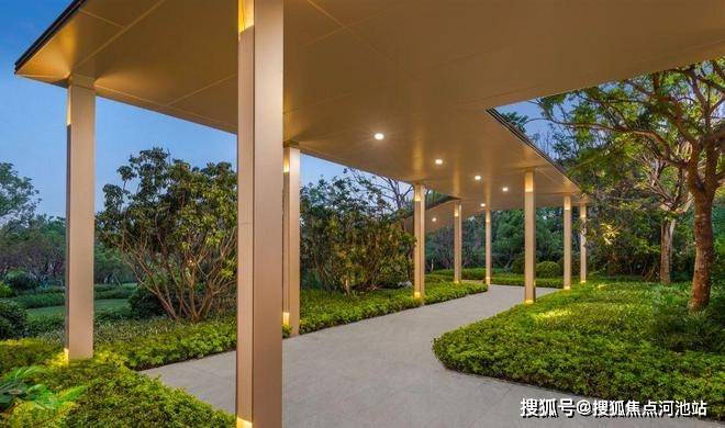 园林由深圳新规住宅规范参与者华森设计操刀,在有限空间里做出了约1.3万㎡的现代东方美学台地式园林。