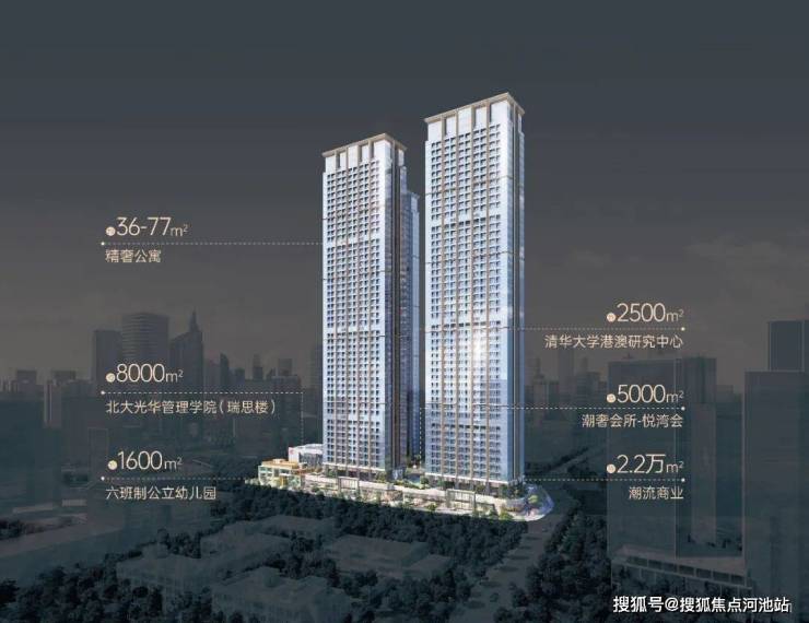 恒裕柏悦湾由2栋47层高公寓与2栋42层商办组成项目自带·约2.2万㎡潮流商业·约5000㎡精英会所·约8000㎡北大光华管理学院(北大光华瑞思楼)·约2500㎡清华大学港澳研究中心·约1600㎡六班制公立幼儿园共同组成约37万㎡垂直综合体——200米深湾超级地标。