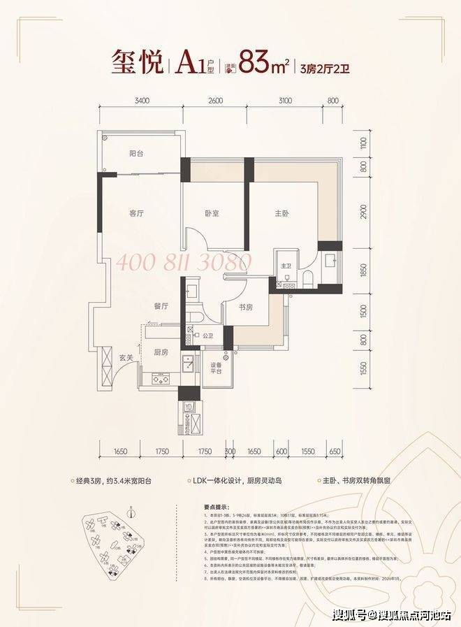 83㎡的3房2厅2卫,首推96套,参考总价310万起,单价3.73万起。