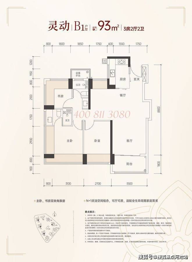 产品方面,大户型产品都用上了南北双阳台设计,主卧沿用新规270°大飘窗,连小户型儿童房也用上双飘窗,通风采光效果绝佳,预计得房率高达100%。其中93㎡可以改3+1房