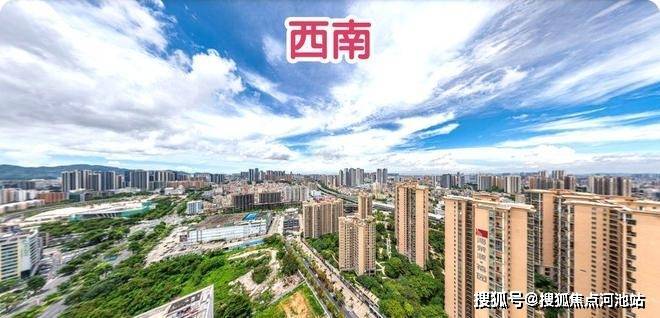 西南:看国际会展中心方向,朝小区外部,18层以下视野会受到鸿荣源禧园建筑影响,近距能看到鸿荣源禧园局部花园景观,远处有一些超高层建筑,但密度不高,18层以上视野都会比较开阔,只是远处低矮老旧建筑太多,城市面貌观感欠佳,只有高层段个别角度能隐约看到点海景。