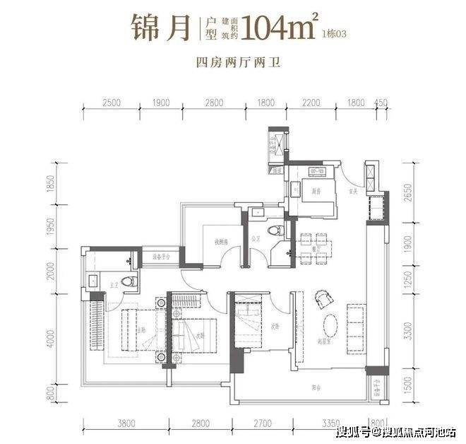 •锦月·建面约104㎡4房2厅2卫:南向四开间,6米阳台引景入室,自此生活融于风景