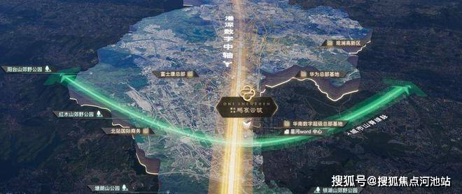 鹏宸云筑位于深圳龙华民治梅林关片区,占据"港深科创中轴"的关键位置。这条南北动脉北起东莞松山湖,串联光明科学城、观澜高新园、华为、富士康基地,一路向南延伸到福田CBD与河套深港合作区。鹏宸云筑正好卡在"中轴之中",属于政策红利、技术资本与人才动脉的聚合点。