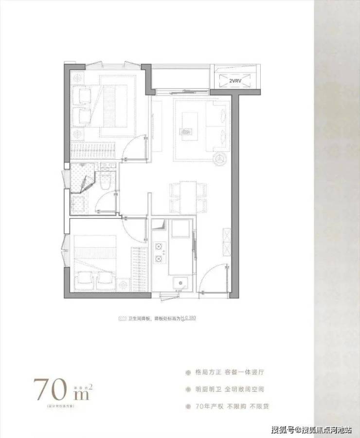 建面约70㎡,标准竖厅格局,明厨明卫,贴近住宅家庭生活需求;每个功能空间尺度都很开阔,居住体验更好,可以作为核心区住宅的“小户型平替”。预计租金水平约9000元/月。