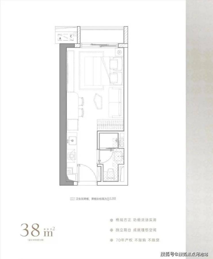 建面约38㎡,麻雀虽小五脏俱全,带阳台通燃气,卫浴干湿分离,房间更防潮,总价1字头,以最低门槛上车福田核心区,预估未来租金水平可达5500元/月。
