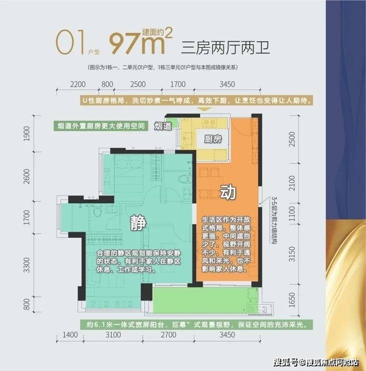 每个户型的 设计十分方正,都带有超阔观景阳台, 几乎将每一寸空间的利用都做到了极致。