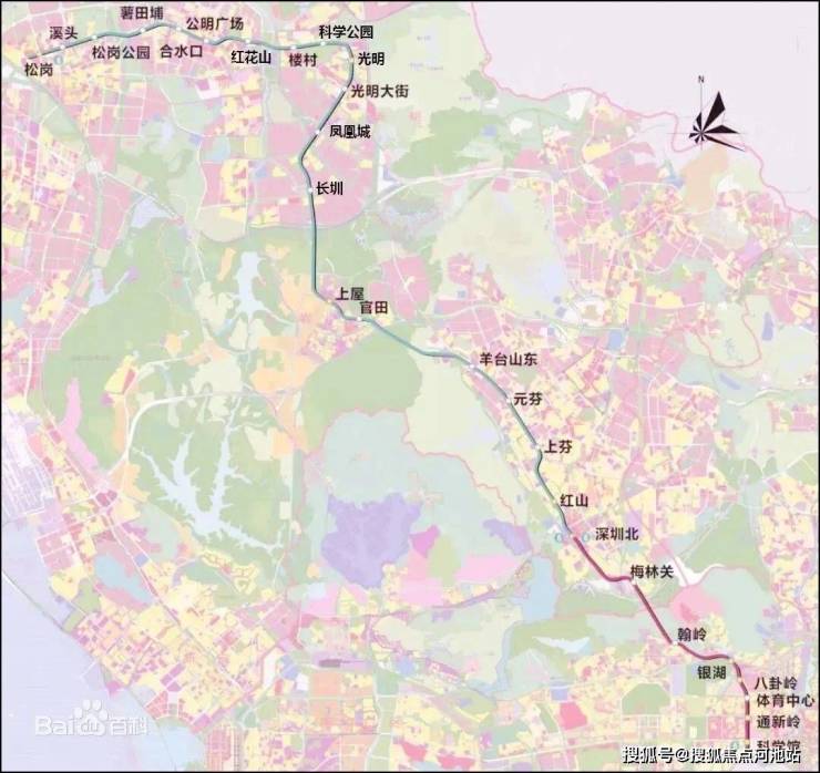 此外,13号线二期(预计2025年开通),从上屋北向北延伸,直至光明的 公明北站与东莞轨道交通R5线换乘。